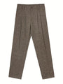 Dessa eleganta herrbyxor har rak passform med pressveck och en subtil struktur som ger dem ett strukturerat och stilrent utseende. Midjan med bälteshällor och dold dragkedja bidrar till en ren finish, vilket gör byxorna lämpliga för både vardagsbruk och formella tillfällen.