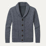 Denna stickade V-ringade kofta har sjalkrage och knappknäppning för en tidlös stil. Den strukturerade stickningen gör den väl lämpad för lager-på-lager och fungerar både till vardags och fest.